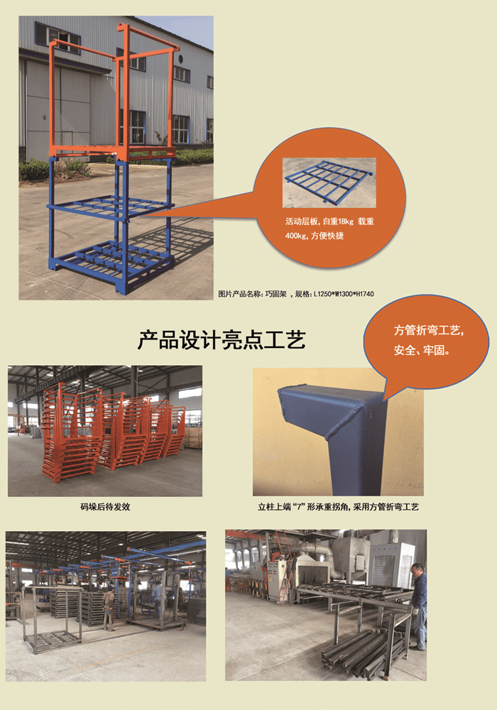 巧固架 產(chǎn)品特點(diǎn):底部碼垛角鐵成80°設(shè)計(jì)促使碼垛的巧固架越壓越緊。